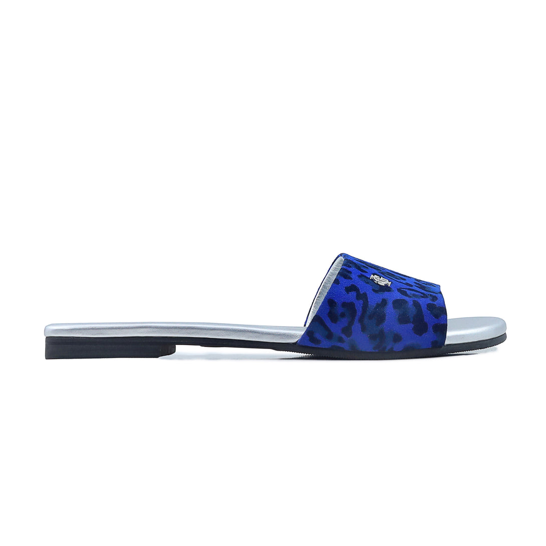 Handcrafted with premium materials, these chic slippers feature a refined blue suede with leopard print detailing, making them the perfect accessory for any occasion.