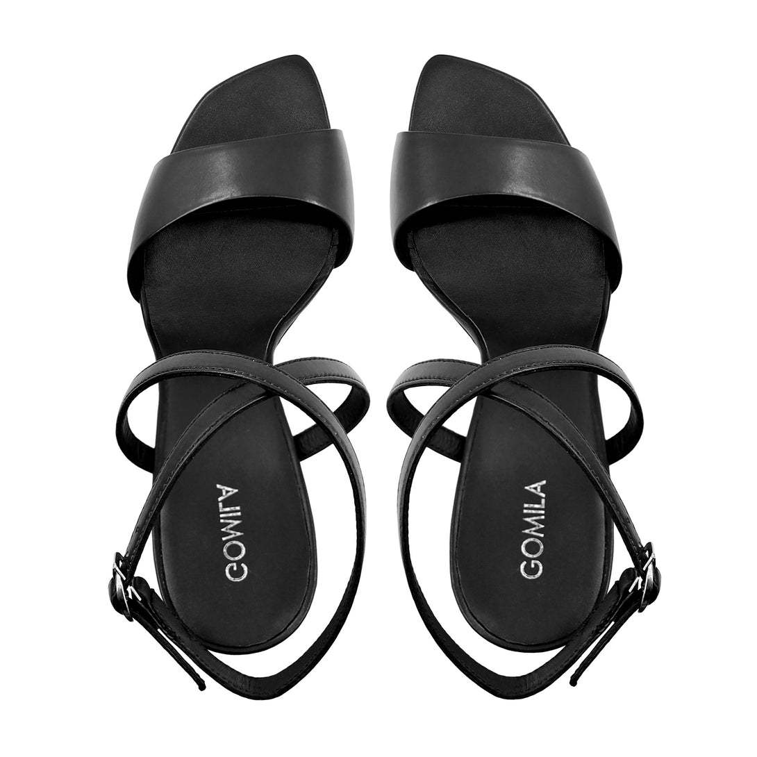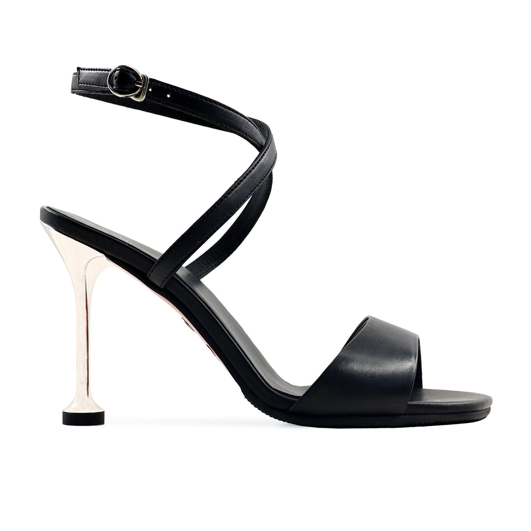 ✅ Effortless Charm: The sleek black leather design paired with an elegant ankle strap and silver-tone 90mm heel height exudes refined sophistication.