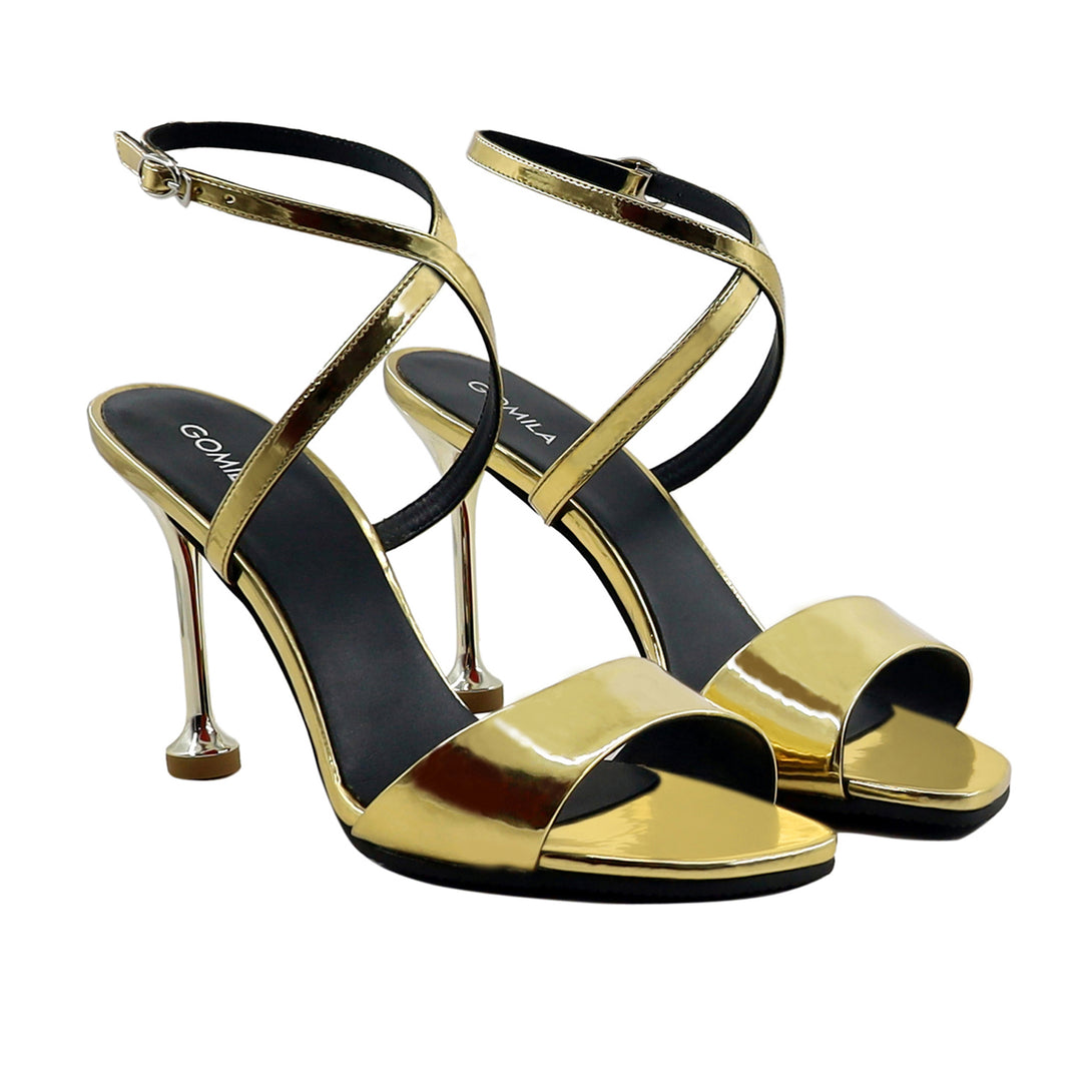 Anna - Women's Golden High Shine Strapped Heels