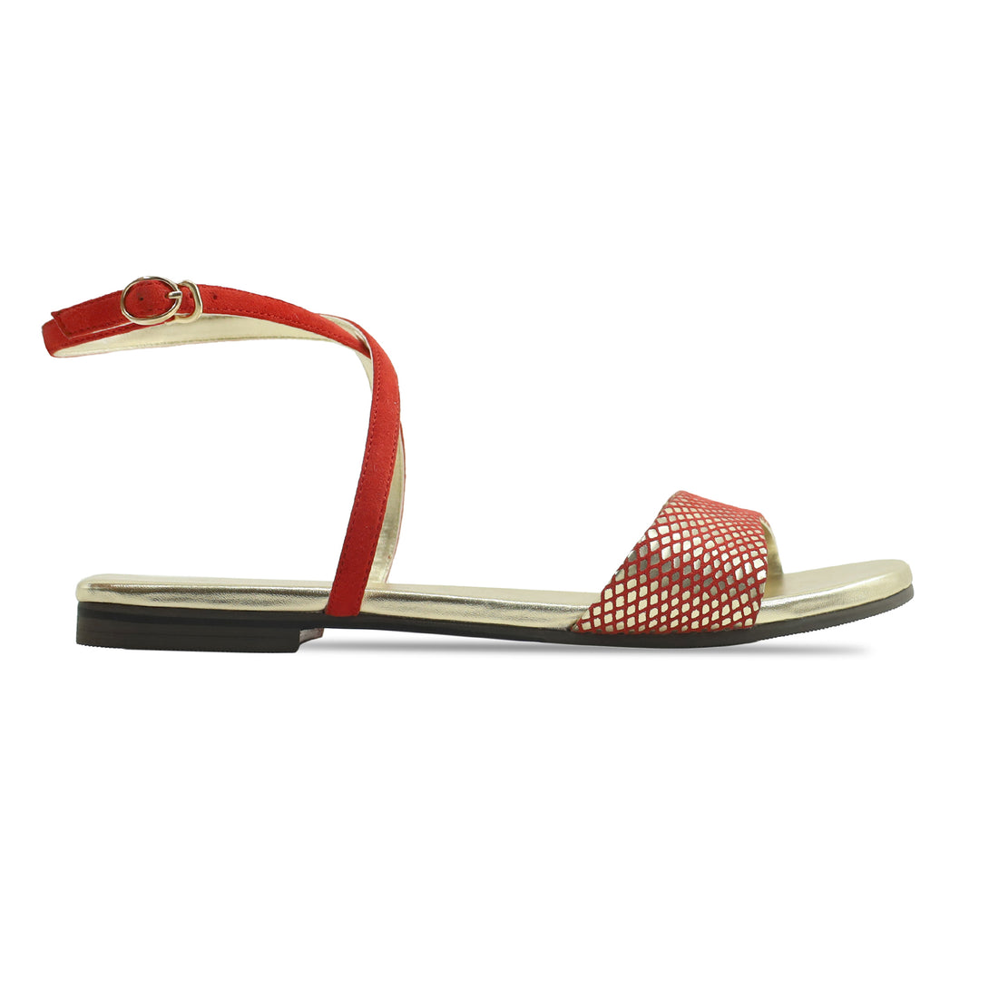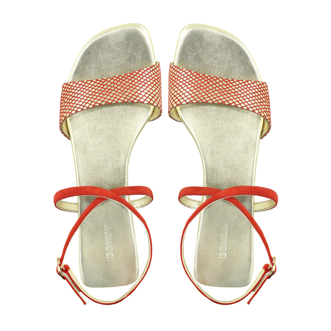 Annabelle are designed for individuals who value timeless style and exceptional practicality. Handcrafted with premium red mesh and a sleek golden base, these sandals effortlessly combine elegance with everyday wearability, making them the perfect choice for any occasion. Soft leather lining and cushioned insoles keep you comfortable from morning to night. Premium materials and a sturdy sole ensure durability and long-lasting wear. Perfect for casual outings, festive occasions, or adding a bold statement to your smart-casual looks. The refined combination of red mesh, golden details, and criss-cross ankle straps makes these sandals a staple in any stylish wardrobe.