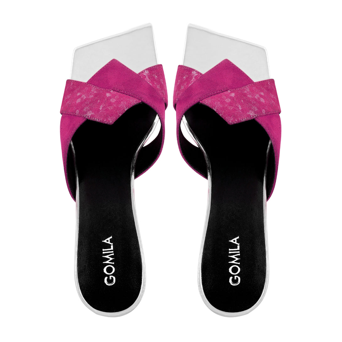 ✅ Effortless Charm: The refined combination of vibrant pink suede with metallic detailing makes these heels a bold and stylish addition to any wardrobe.
