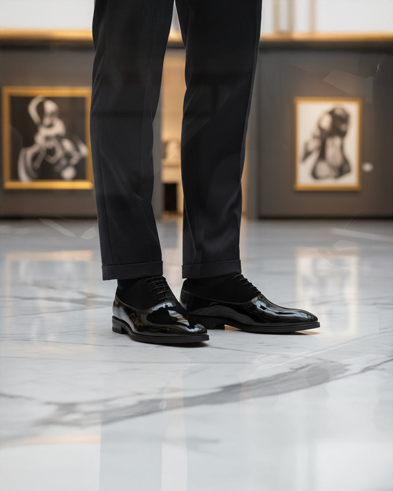 Aristo - Men's Black Patent Leather and Kid Suede Oxford Shoe