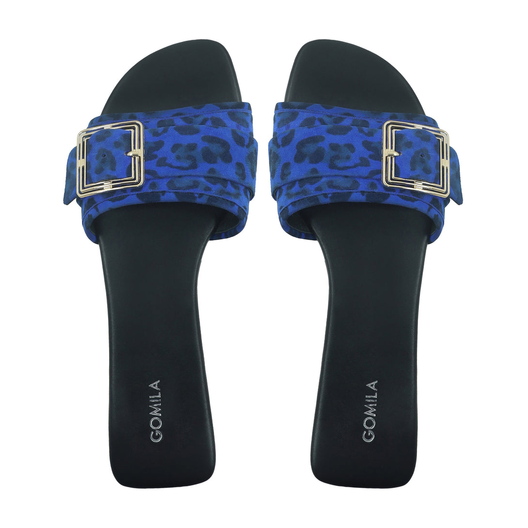 Handcrafted with premium blue leopard-print suede, these slippers effortlessly combine elegance with everyday wearability, making them the perfect choice for any occasion.