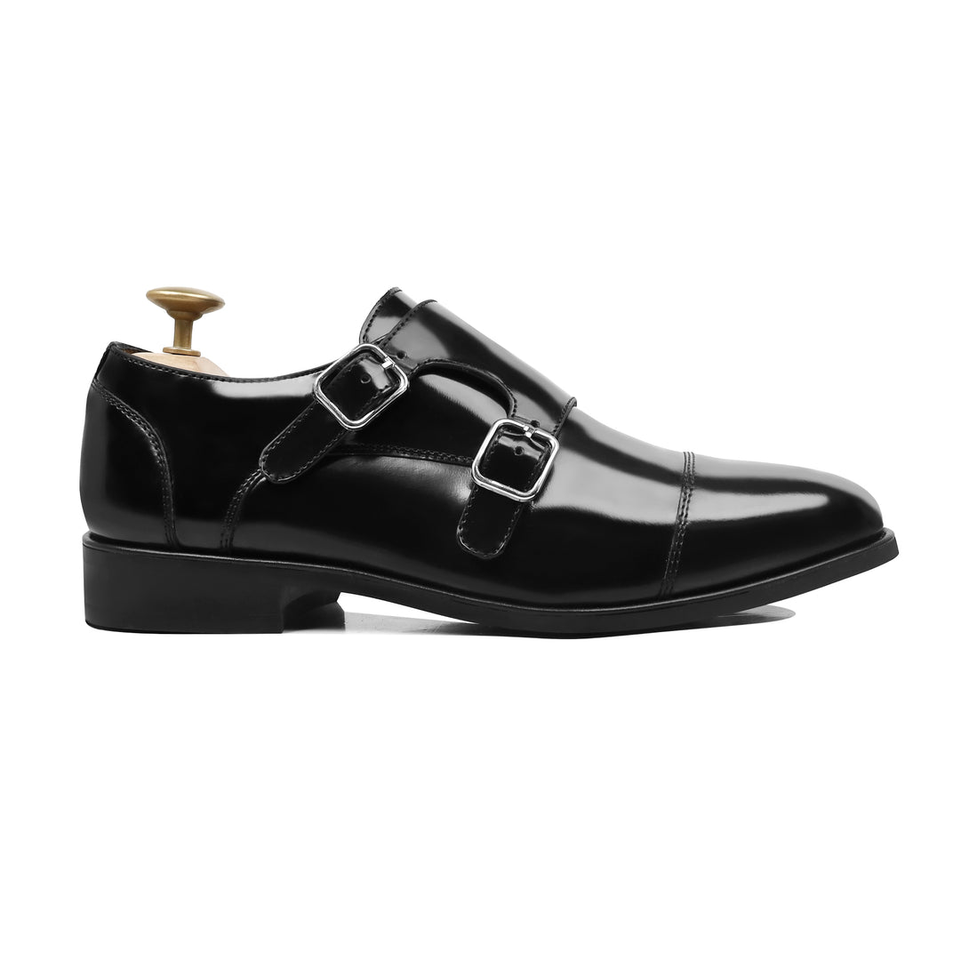 Holt - Men's Black Box Leather High Shine Double Monksrap