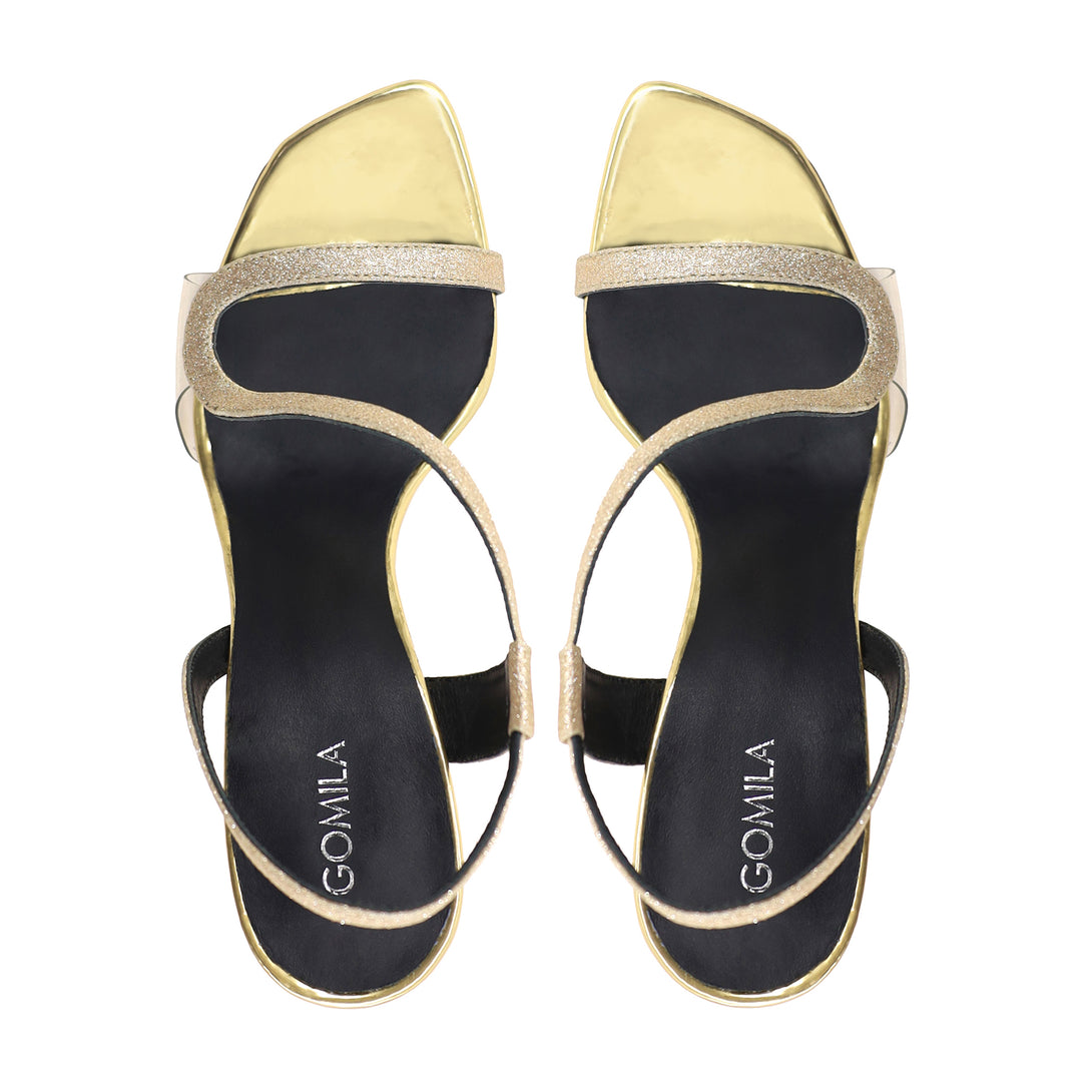 ✅ Effortless Charm: The refined combination of vibrant golden shimmering straps, golden detailing, and a graceful silhouette makes these heels a standout addition to any wardrobe.