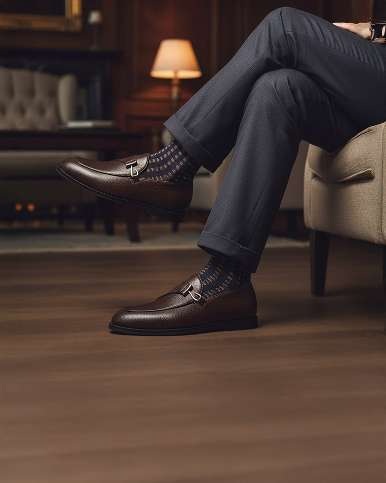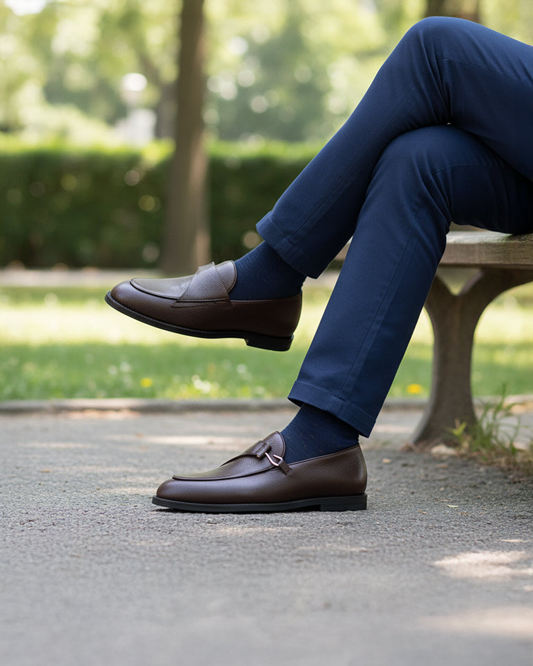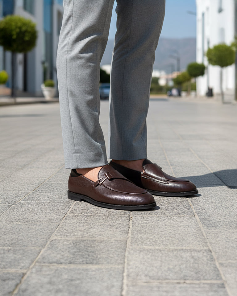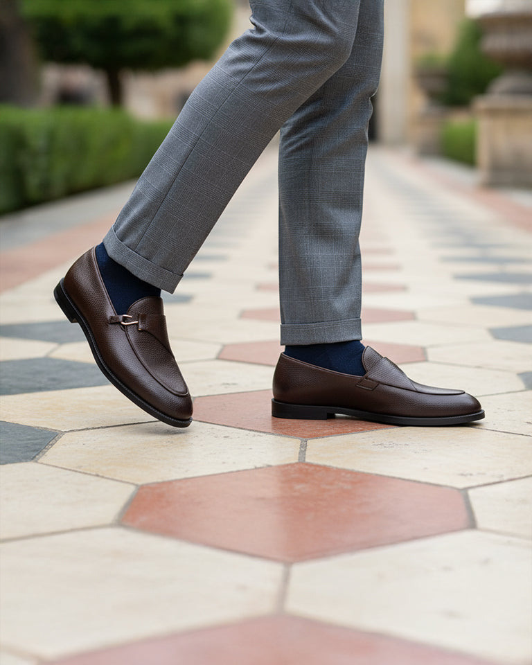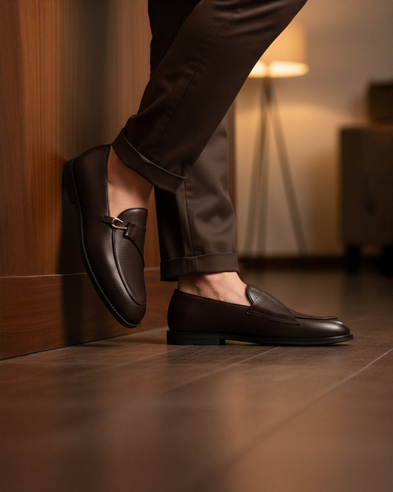 Lexoro - Men's Dark Brown Pebble Grain Leather Loafer