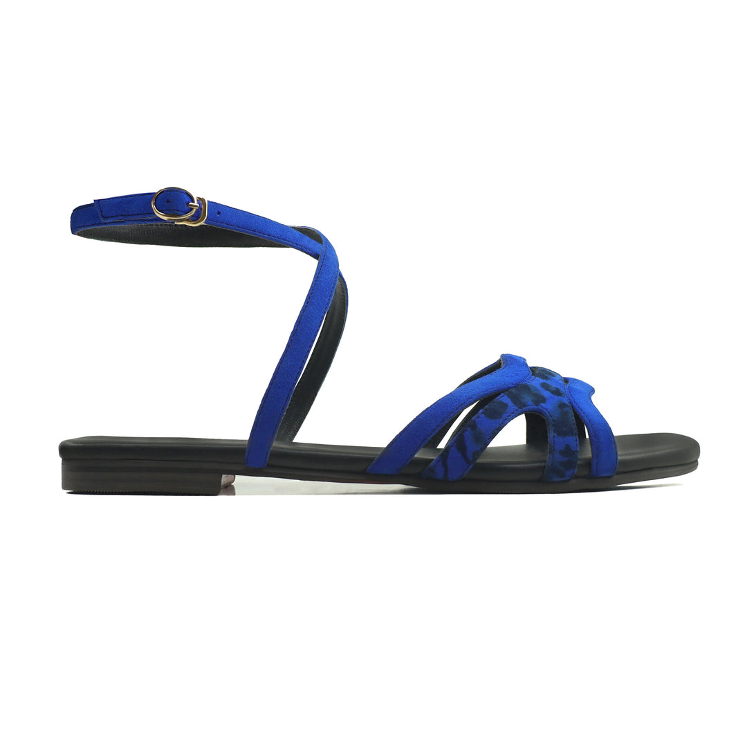 Lucia are designed for individuals who value timeless style and exceptional practicality. Handcrafted with premium blue suede and leopard-printed suede, these sandals effortlessly combine elegance with everyday wearability, making them the perfect choice for any occasion. Soft leather straps and a cushioned footbed keep you comfortable from morning to night. Premium materials and a durable sole ensure long-lasting wear and resilience. Perfect for formal gatherings, casual outings, or adding a touch of glamour to your smart-casual looks. The refined combination of sleek blue suede and leopard-printed detailing makes these sandals a standout addition to any wardrobe.
