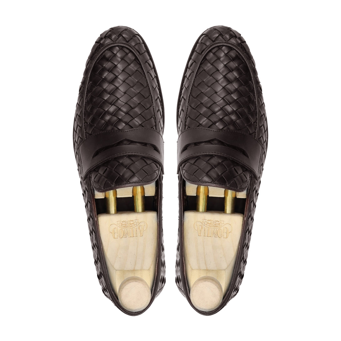 Kakillom - Men's Dark Brown Hand Woven Calf Leather Loafer